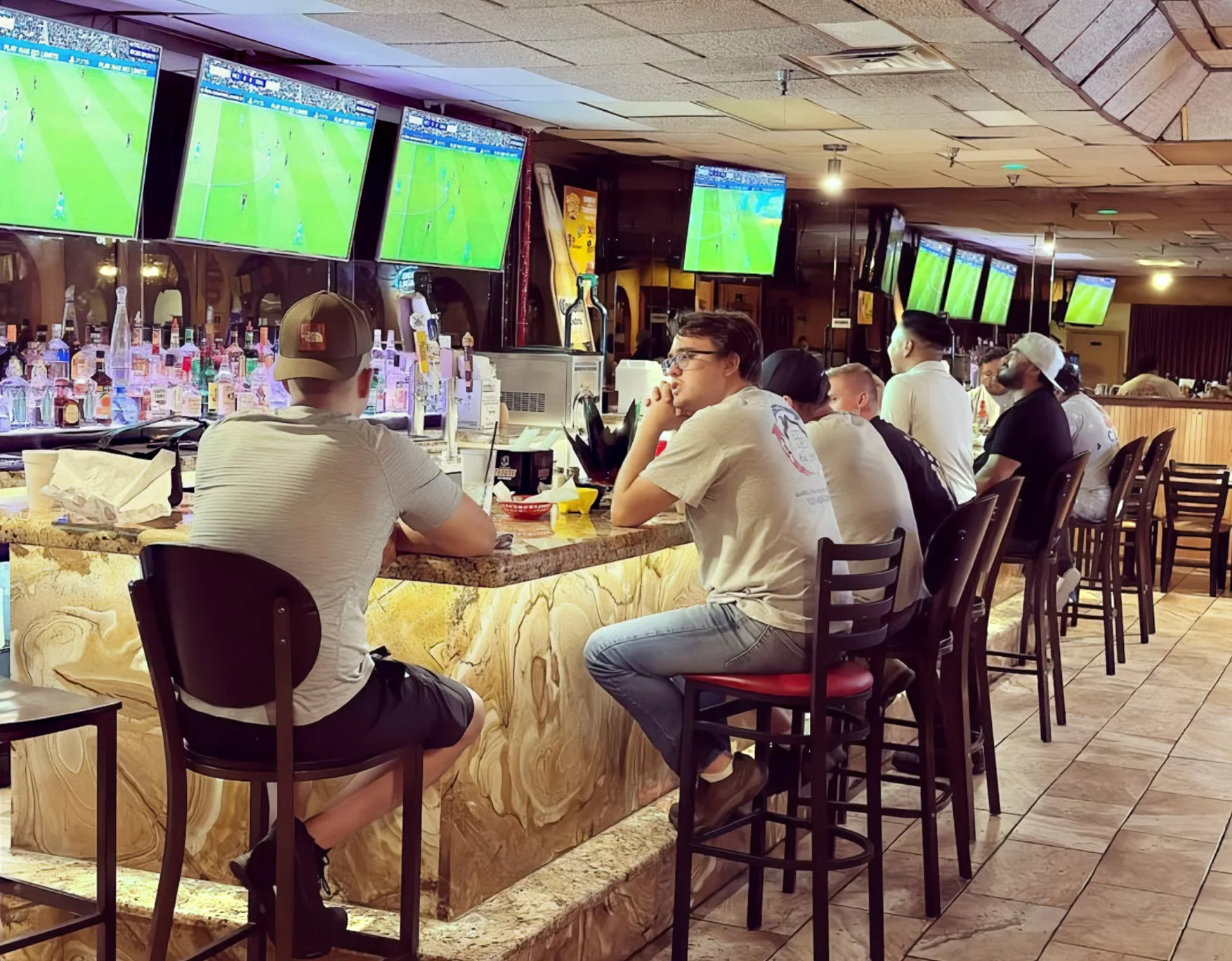 The restaurant features a massive, colorful interior that is well-suited for large groups and celebrations. Guests are often greeted with immediate seating and complimentary fresh chips and salsa. For sports fans, the spacious bar area features multiple large screens that often show soccer or major games.